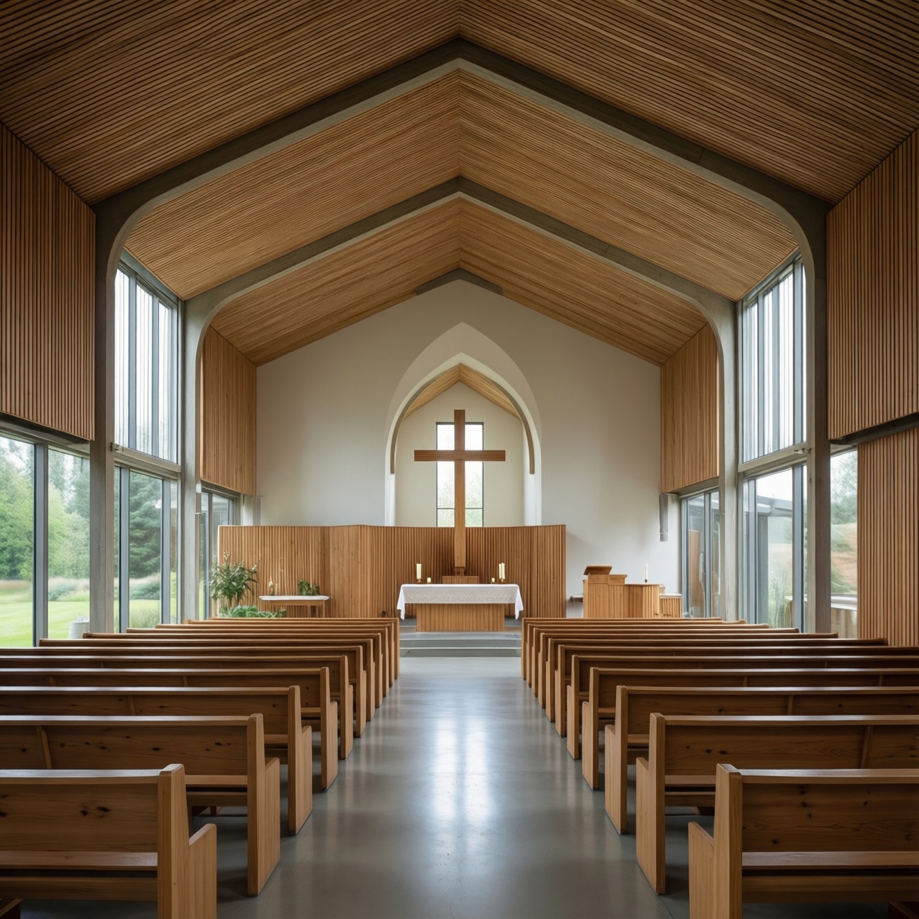 Да, если современность выражена в конструкциях, свете, функциональной ясности и качестве деталей, а литургическая логика и иерархия пространства соблюдены. Важно зафиксировать это в богословско-литургическом ТЗ до эскизов.