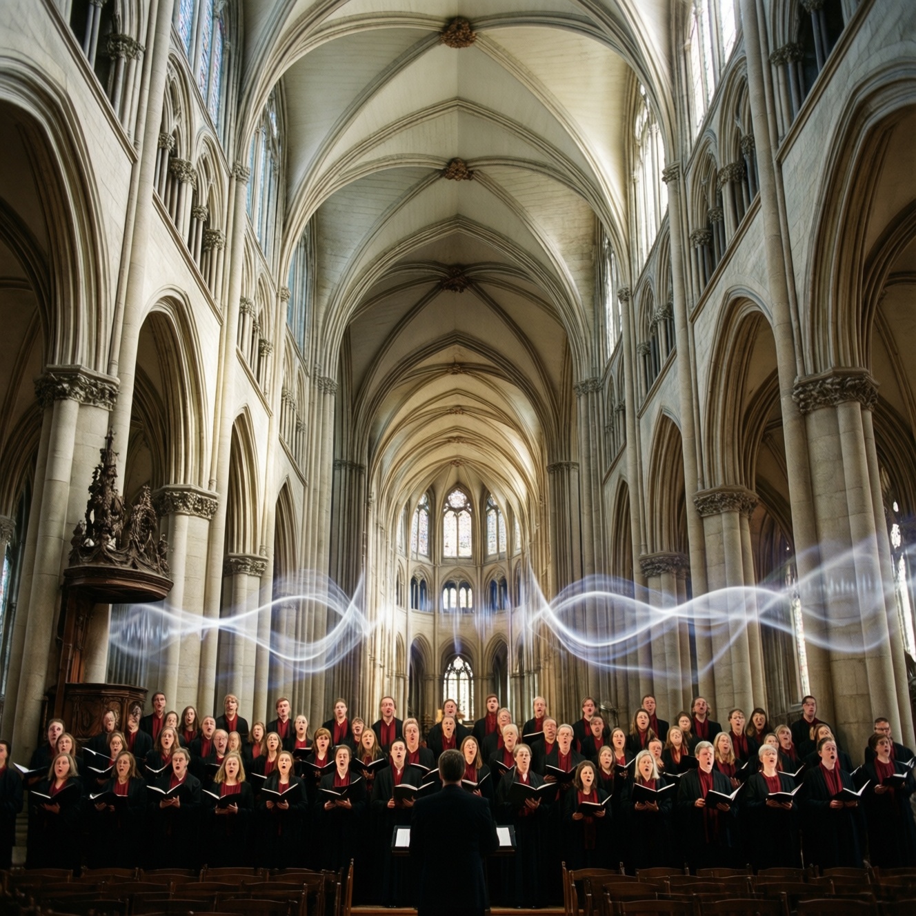 Акустика собора определяется тем, как звук от хора и речи отражается от стен, сводов и пола и складывается в зале. В первые десятки миллисекунд важны ранние отражения: они добавляют "тело" и помогают слышать ансамбль. Позже доминирует реверберация - затухающий хвост, который делает пение протяжным, но при избытке размывает согласные и смысл текста.