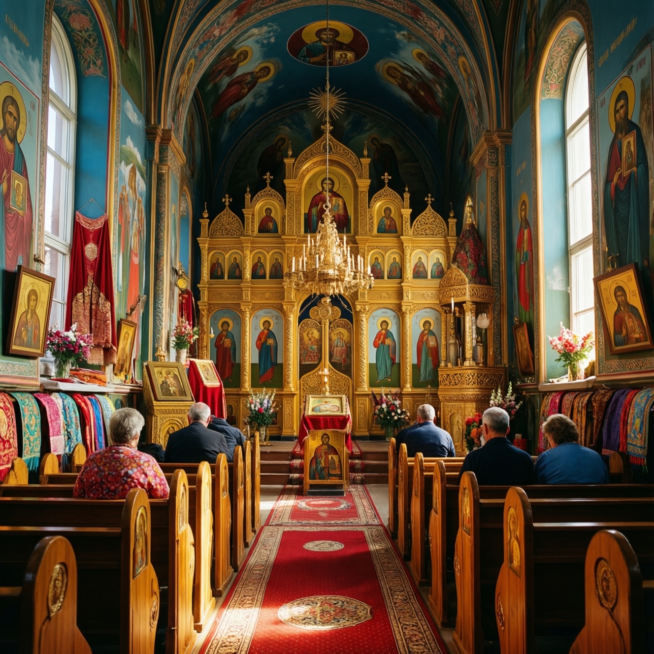 • Поддержка литургического цвета (через зелень/белые цветы/сдержанные тона) без "соревнования" с иконами.